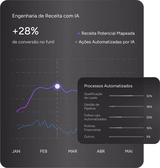 Muito além do CRM, nós estruturamos sua jornada de receita completa, detectamos ineficiências críticas e implementamos soluções estratégicas para acelerar seu crescimento.